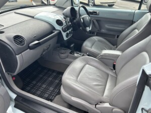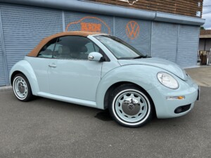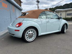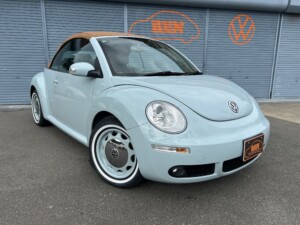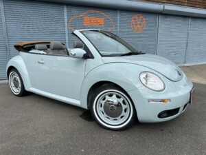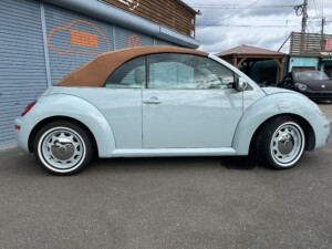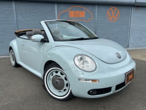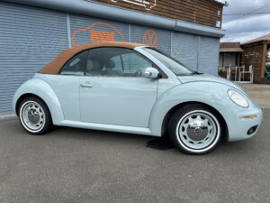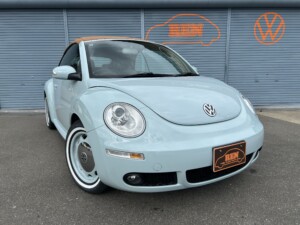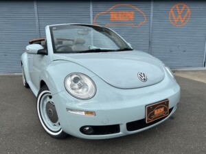 ニュービートルカブリオレ アクエリアスブルーの車両が入荷致しました。平成19年式、走103,328km、車検令和8年4月までとなります。クラシックホイールにホワイトリボンタイヤ取り付けございます。また過去当店にてメンテナンスさせて頂いておりました車両となり整備箇所多数ございます。※タイミングベルト、テンショナー、ウォーターポンプ、ドライブベルト、水温センター、フランジ、サーモスタット、プラグコード、プラグ、イグニッションコイル交換済、幌張り替え、内装張り替え完了しております。外装、内装、機関のコンディション良好な車両となります。ご検討のほどよろしくお願い致します。