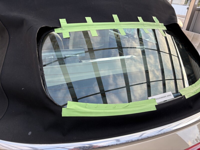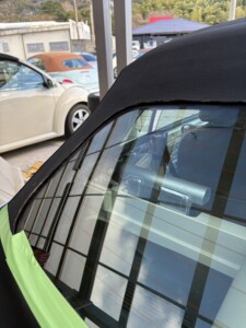 ニュービートルカブリオレ リアガラス補修