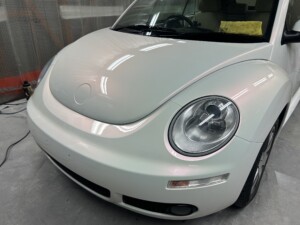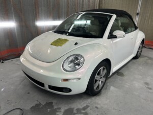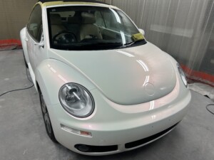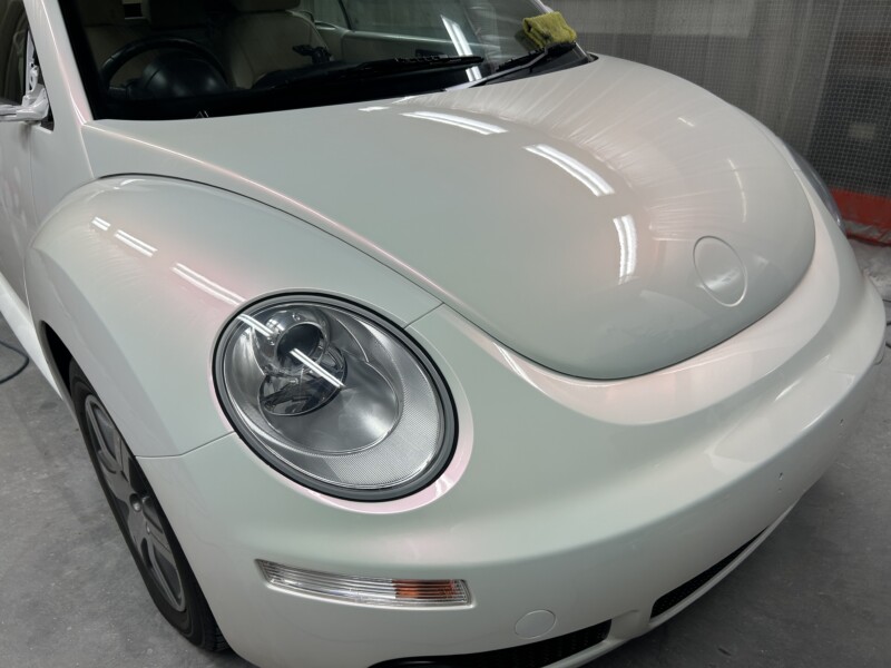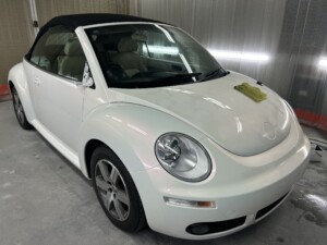 全塗装作業させて頂いておりますニュービートルカブリオレピンクパール車両、作業も最終局面に入っております。ベースカラーはホワイトにピンクパールを配合した3コートパール全塗装です。ご成約頂きましたお客様に新品に張り替える幌と張り替えのシート生地やステッチカラーをお選び頂きます。シート生地はレザーの場合には本皮のカラーはもとより産地(イギリス、アメリカ等)お選び頂けます。ロールスロイスやフェラーリのシート生地もお選び頂けます。こだわりの1台に仕上げて頂きたいと思います。引き続きよろしくお願い致します。