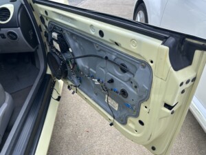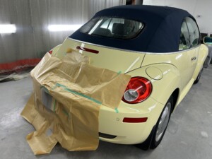 入荷致しましたニュービートルカブリオレの内外装仕上げ作業を実施させて頂いております。内装は剥がれたレザーを張り替えさせて頂きシートはリペア致します。外装は傷、凹みを補修、塗装させて頂き磨きコーティング作業を実施させて頂きます。綺麗な状態でお客様にご覧頂けます様準備させて頂いております。引き続きよろしくお願い致します。