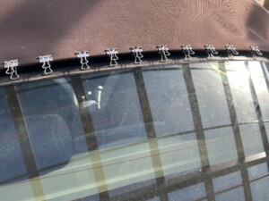 ニュービートルカブリオレ幌のリアガラス剥離を修理させて頂きました。最近夏の気温上昇による影響でしょうか、事案が増えております。新品の幌に交換することが良い場合もございますがコストがかかります。幌の生地が傷んでない状態の場合にはリペアをお勧めさせて頂きます。ご検討のほどよろしくお願い致します。