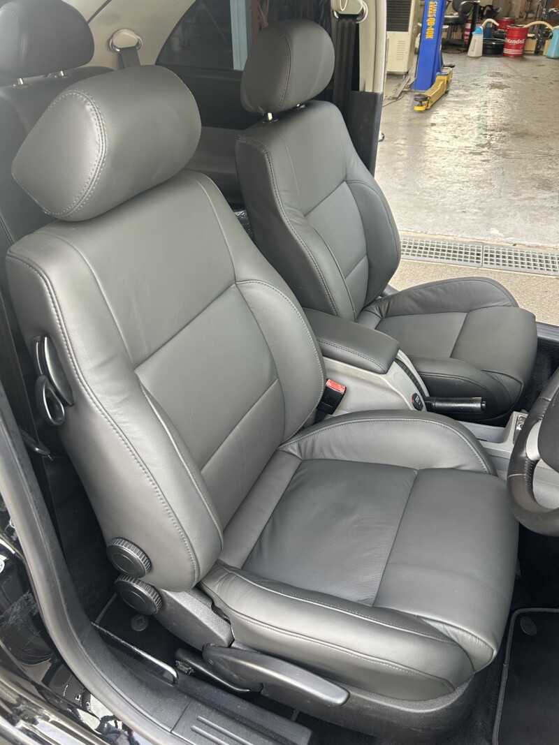 ↑運転席・助手席本革レザー張り替えブラックステッチ加工実施させて頂きました。